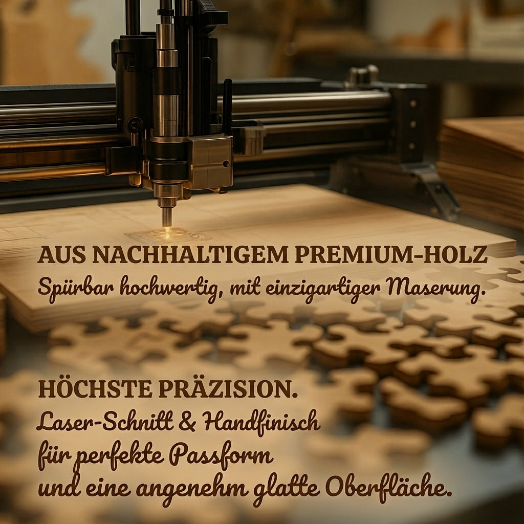 Entdecken Sie die Schönheit von Premium-Holzpuzzles aus Schleswig-Holstein. Unsere handgefertigte Puzzles sind Meisterwerke der Präzision und Ästhetik. Als Gründer teilen wir eine Leidenschaft für Handwerkskunst und Kreativität. Jedes Puzzle erzählt eine einzigartige Geschichte und lädt zum Entspannen und Entdecken ein. Erleben Sie die Magie unserer Puzzles und lassen Sie sich von Qualität und Design inspirieren.